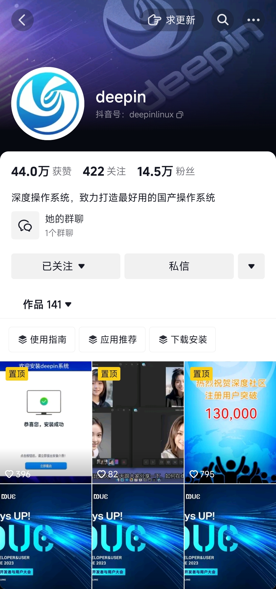 Deepin、UOS 公众号、抖音